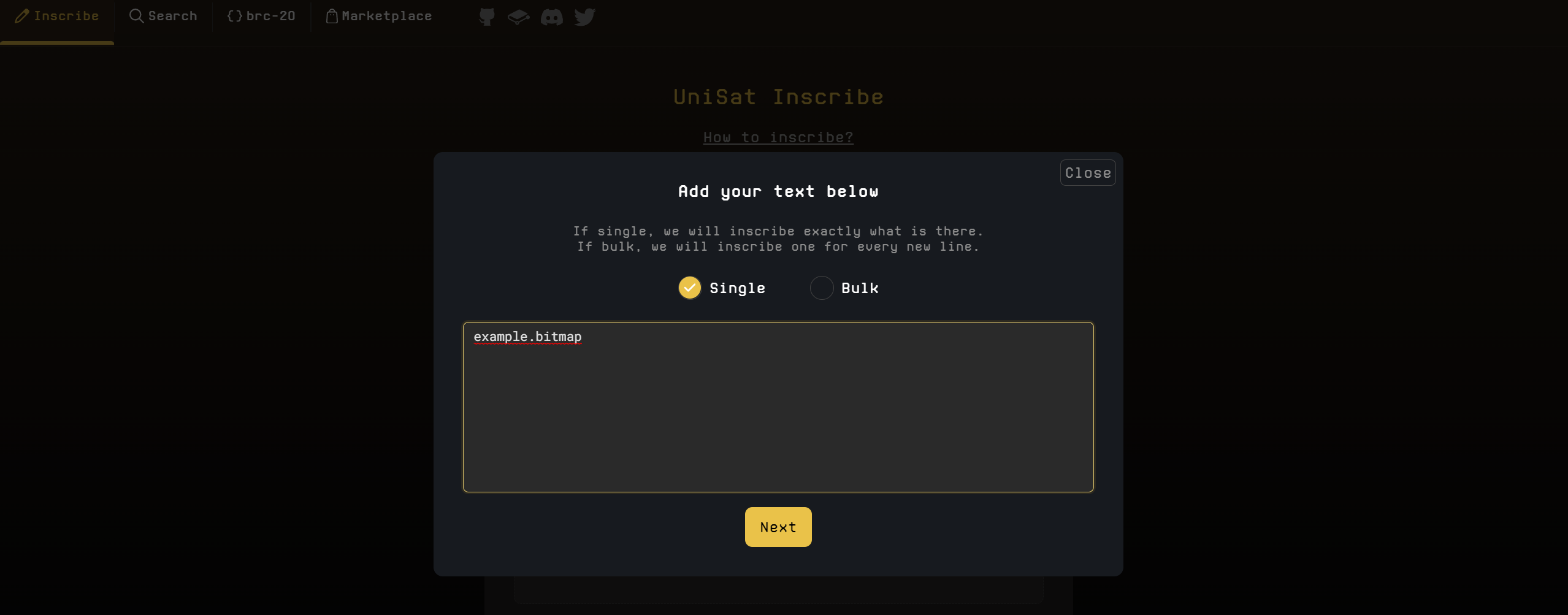 If your block number has not been inscribed you can then go to the inscription page, select the “text” field, enter your block and inscribe.